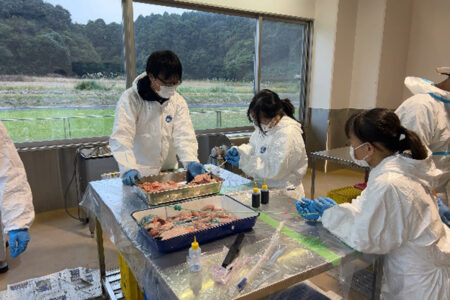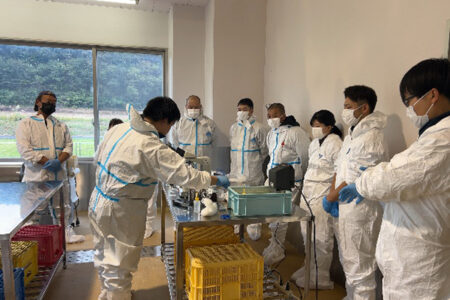 県養豚研究所研究員による豚の繁殖生理や種付け理論に関する専門的な講義と、顕微鏡操作、保存液処理法、豚の子宮を用いた人工授精の方法など、実践的な実技を行いました。講義や実習の際には、受講生から活発な質問が寄せられたほか、受講生同士でも積極的に意見交換が行われ、終始意欲的な雰囲気で進められました。