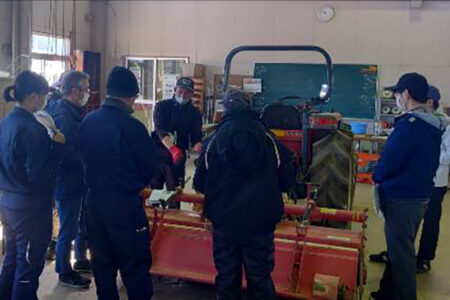 新規就農者など一般の農業初心者を対象に農業機械基礎研修を実施し、農作業の安全に関する事項や、トラクターのメンテナンス方法、作業機の着脱方法、ロータリー耕の基本操作などを学びました。