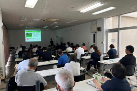 国や県の補助事業を活用して侵入防止柵を設置した市町村の職員や地域農業者を主な対象に、設置後の適切な維持管理手法について、座学および実習形式で講義を実施しました。特にイノシシ対策用のワイヤーメッシュ柵の点検および修繕方法に重点を置いて指導し、研修対象地区においては、防護柵が正常に機能しているかどうかの点検も実施しました。