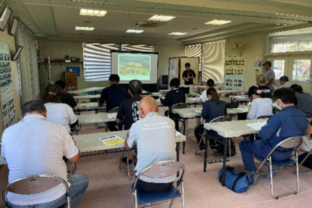 受講者からは「侵入防止柵については、電気柵をメインに取組んでいる事から、設置方法などについて改めて確認することができ、大変参考になりました」、「防除方法で効果がなかった要因やイノシシの特性によるものの内容が今後対策するにあたり参考になった」、「講義のイノシシ生態、柵の役割が参考になった。実際の電気柵をチェックして歩くのが実践的でよかった」といった感想がありました。